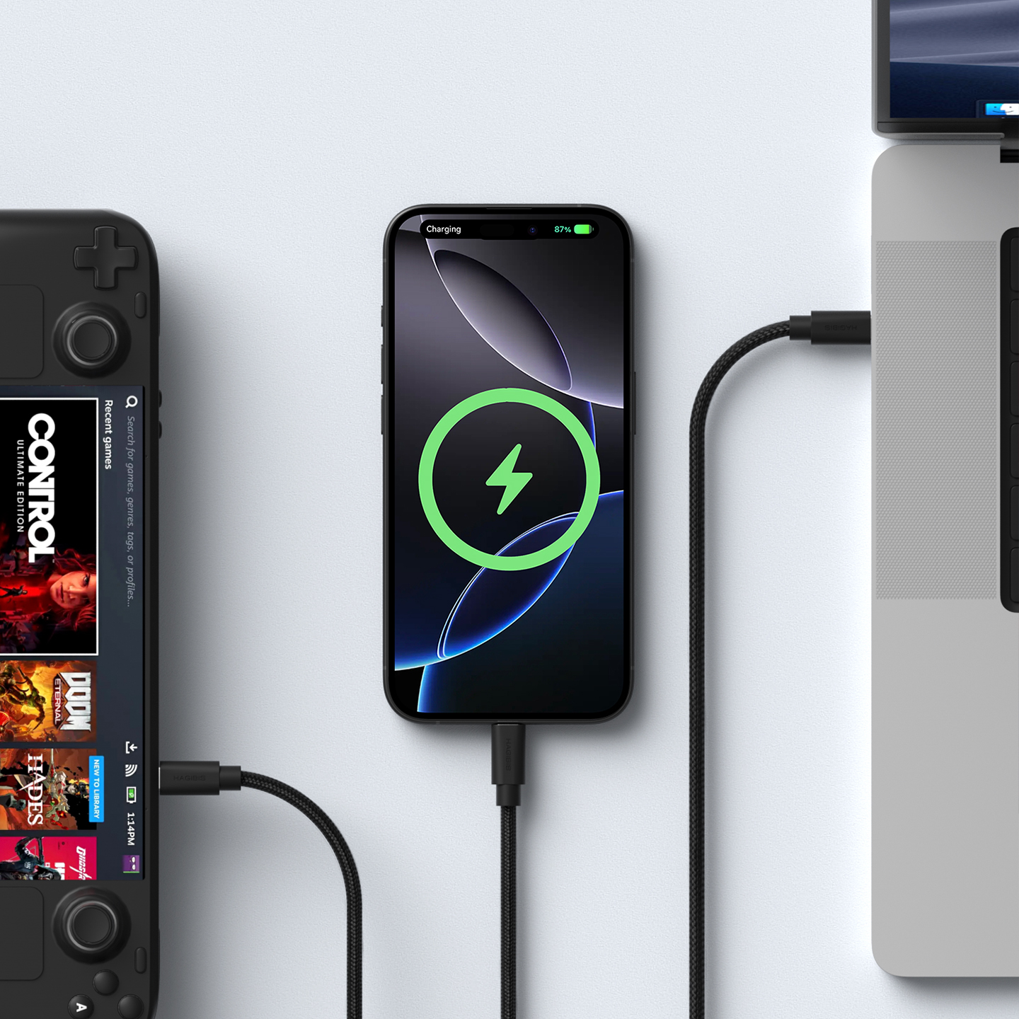 80Gbps数据传输 / 8K@60Hz 高清视频 / 广泛兼容 / 柔软线身 / 支持240W快充/耐磨编织线身